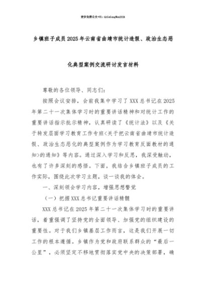 【七哥公文】2025年:【七哥公文】乡镇班子成员2025年云南省曲靖市统计造假、政治生态恶化典型案例交流研讨发言材料+更多免费公文+VX:QiGeGongWen2024+更多免费公文+VX:QiGeGongWen2024