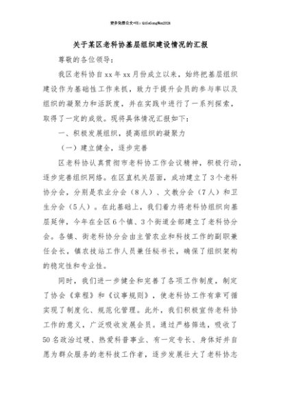 【七哥公文】2025年:【七哥公文】关于某区老科协基层组织建设情况的汇报+更多免费公文+VX:QiGeGongWen2024+更多免费公文+VX:QiGeGongWen2024