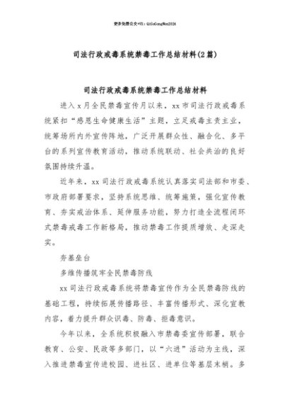 【七哥公文】2025年:【七哥公文】(2篇)司法行政戒毒系统禁毒工作总结材料+更多免费公文+VX:QiGeGongWen2024+更多免费公文+VX:QiGeGongWen2024