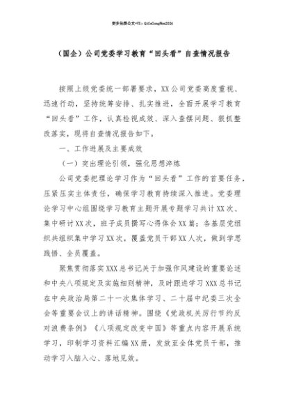 【七哥公文】2025年:【七哥公文】(国企)公司党委学习教育“回头看”自查情况报告+更多免费公文+VX:QiGeGongWen2024+更多免费公文+VX:QiGeGongWen2024