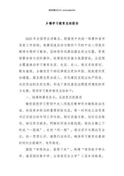 【七哥公文】2025年:【七哥公文】乡镇学习教育总结报告+更多免费公文+VX:QiGeGongWen2024+更多免费公文+VX:QiGeGongWen2024