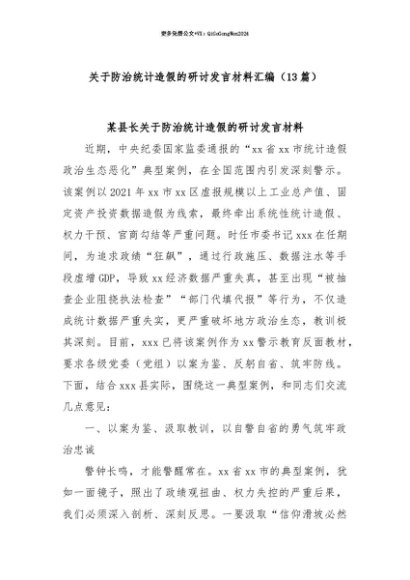 【七哥公文】2025年:【七哥公文】(13篇)关于防治统计造假的研讨发言材料汇编+更多免费公文+VX:QiGeGongWen2024+更多免费公文+VX:QiGeGongWen2024