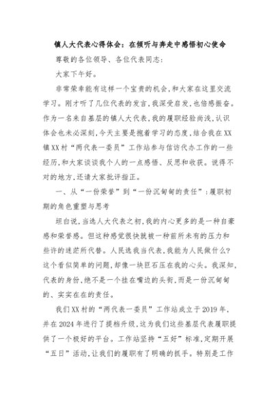 / 【七哥公文】2025年:镇人大代表心得体会:在倾听与奔走中感悟初心使命+更多免费公文+VX:QiGeGongWen2024