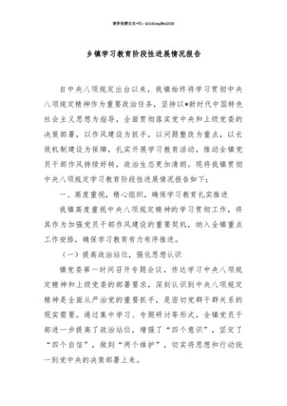 【七哥公文】2025年:【七哥公文】乡镇学习教育阶段性进展情况报告+更多免费公文+VX:QiGeGongWen2024+更多免费公文+VX:QiGeGongWen2024