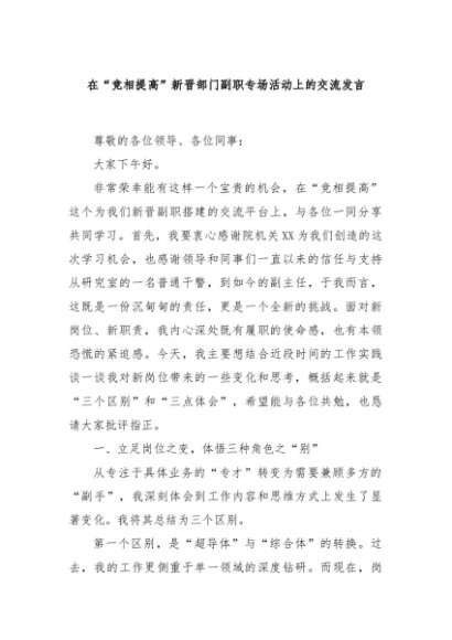 / 【七哥公文】2025年:在“竞相提高”新晋部门副职专场活动上的交流发言+更多免费公文+VX:QiGeGongWen2024