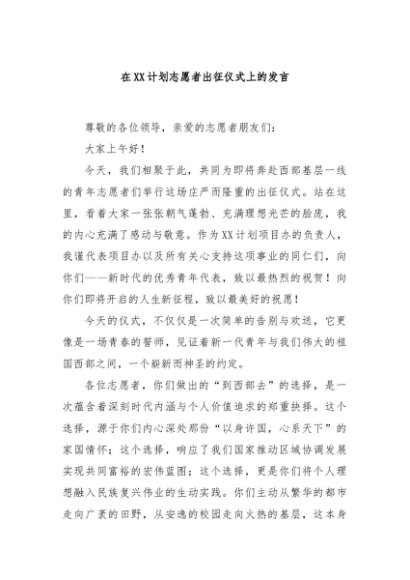 / 【七哥公文】2025年:在XX计划志愿者出征仪式上的发言+更多免费公文+VX:QiGeGongWen2024