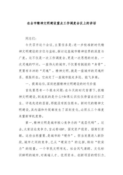 / 【七哥公文】2025年:在全市精神文明建设重点工作调度会议上的讲话+更多免费公文+VX:QiGeGongWen2024
