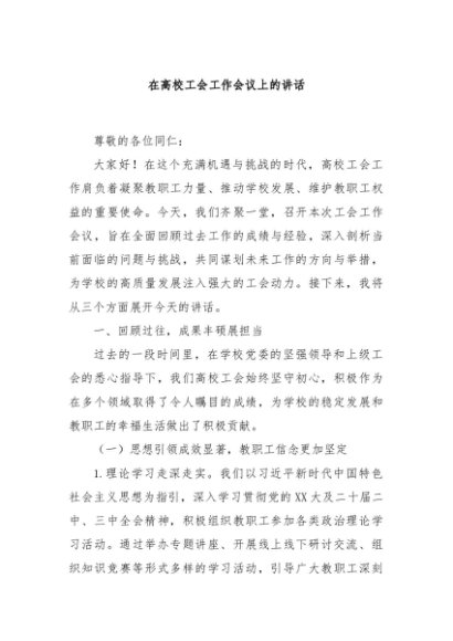 / 【七哥公文】2025年:在高校工会工作会议上的讲话+更多免费公文+VX:QiGeGongWen2024