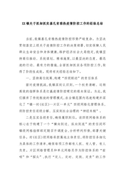 【七哥公文】2025年:XX镇关于抓细抓实基孔肯雅热疫情防控工作的经验总结+更多免费公文+VX:QiGeGongWen2024