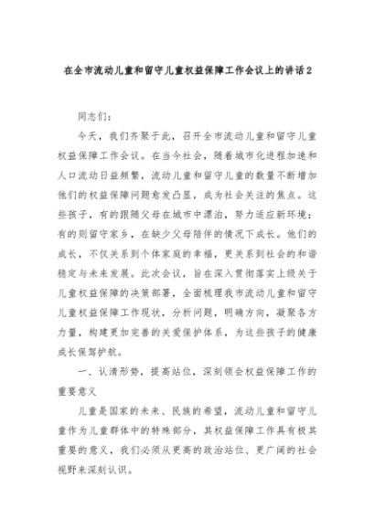 【七哥公文】2025年:在全市流动儿童和留守儿童权益保障工作会议上的讲话2+更多免费公文+VX:QiGeGongWen2024