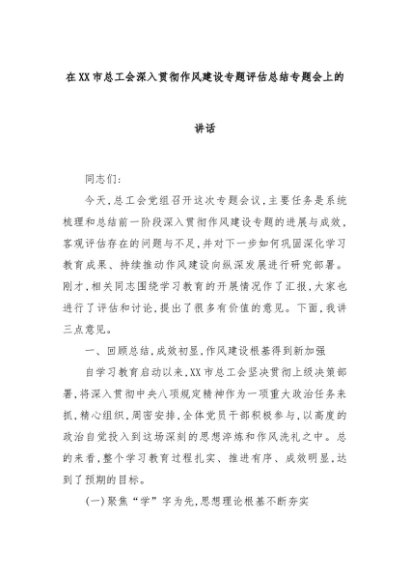 【七哥公文】2025年:在XX市总工会深入贯彻作风建设专题评估总结专题会上的讲话+更多免费公文+VX:QiGeGongWen2024