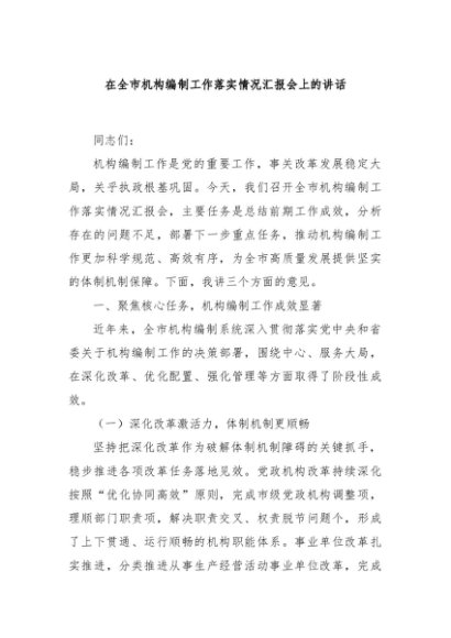 / 【七哥公文】2025年:在全市机构编制工作落实情况汇报会上的讲话+更多免费公文+VX:QiGeGongWen2024