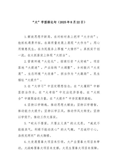 / 【七哥公文】2025年:“大”字型排比句(2025年8月22日)+更多免费公文+VX:QiGeGongWen2024