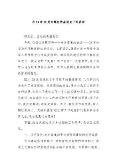 / 【七哥公文】2025年:在XX市XX局专题评估座谈会上的讲话+更多免费公文+VX:QiGeGongWen2024
