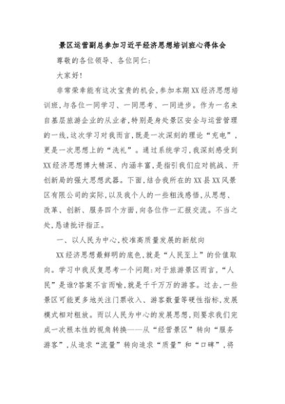 / 【七哥公文】2025年:景区运营副总参加习近平经济思想培训班心得体会+更多免费公文+VX:QiGeGongWen2024
