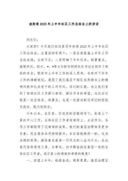 / 【七哥公文】2025年:在街道2025年上半年社区工作总结会上的讲话+更多免费公文+VX:QiGeGongWen2024