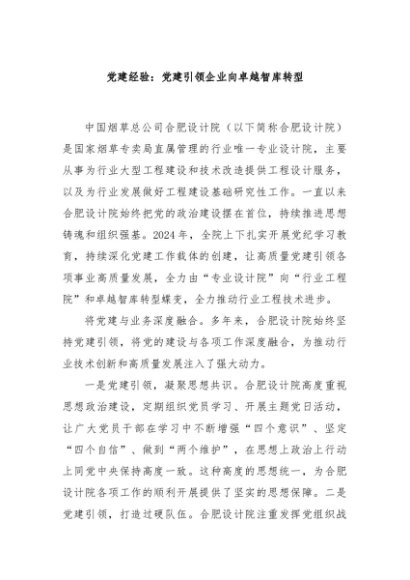 / 【七哥公文】2025年:党建经验:党建引领企业向卓越智库转型+更多免费公文+VX:QiGeGongWen2024