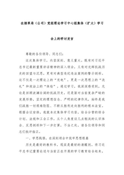 【七哥公文】2025年:在烟草局(公司)党组理论学习中心组集体(扩大)学习会上的研讨发言+更多免费公文+VX:QiGeGongWen2024