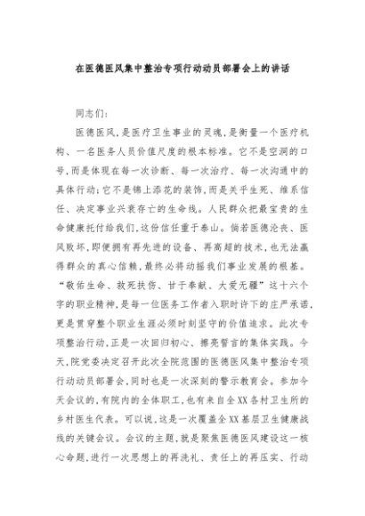 / 【七哥公文】2025年:在医德医风集中整治专项行动动员部署会上的讲话+更多免费公文+VX:QiGeGongWen2024