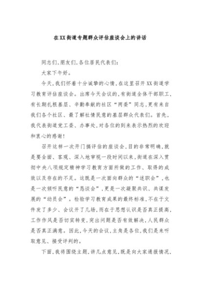 / 【七哥公文】2025年:在XX街道专题群众评估座谈会上的讲话+更多免费公文+VX:QiGeGongWen2024