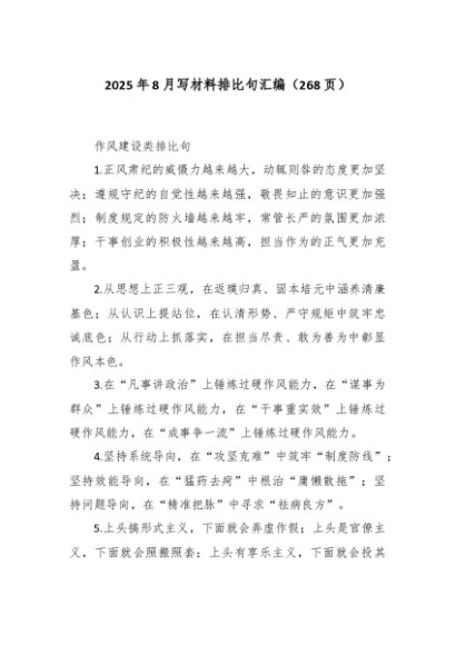 / 【七哥公文】2025年:2025年8月写材料排比句汇编(268页)+更多免费公文+VX:QiGeGongWen2024