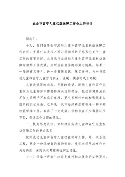 / 【七哥公文】2025年:在全市留守儿童权益保障工作会上的讲话+更多免费公文+VX:QiGeGongWen2024