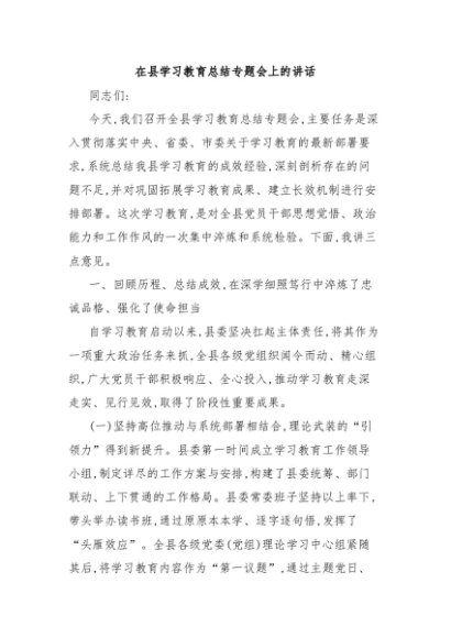 / 【七哥公文】2025年:在县学习教育总结专题会上的讲话+更多免费公文+VX:QiGeGongWen2024