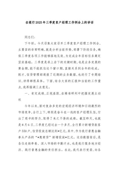 / 【七哥公文】2025年:在银行2025年三季度客户经理工作例会上的讲话+更多免费公文+VX:QiGeGongWen2024