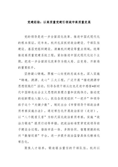 / 【七哥公文】2025年:党建经验:以高质量党建引领城市高质量发展+更多免费公文+VX:QiGeGongWen2024