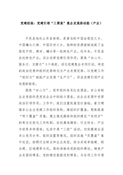 【七哥公文】2025年:党建经验:党建引领“三聚焦”惠企发展添动能(产业)+更多免费公文+VX:QiGeGongWen2024