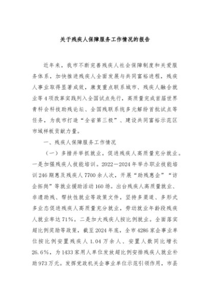 / 【七哥公文】2025年:关于残疾人保障服务工作情况的报告+更多免费公文+VX:QiGeGongWen2024
