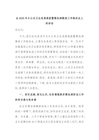 【七哥公文】2025年:在2025年乡公共卫生进展通报暨慢性病摸排工作推进会上的讲话+更多免费公文+VX:QiGeGongWen2024