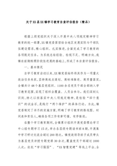 / 【七哥公文】2025年:关于XX县XX镇学习教育自查评估报告(精品)+更多免费公文+VX:QiGeGongWen2024