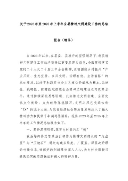 【七哥公文】2025年:关于2023年至2025年上半年全县精神文明建设工作的总结报告(精品)+更多免费公文+VX:QiGeGongWen2024