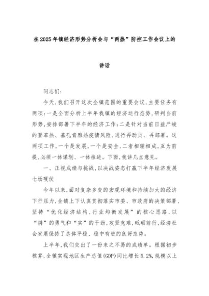 【七哥公文】2025年:在2025年镇经济形势分析会与“两热”防控工作会议上的讲话+更多免费公文+VX:QiGeGongWen2024