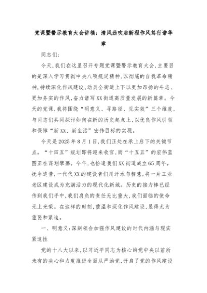【七哥公文】2025年:党课暨警示教育大会讲稿:清风劲吹启新程作风笃行谱华章+更多免费公文+VX:QiGeGongWen2024