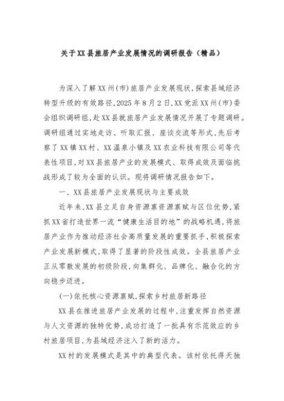 / 【七哥公文】2025年:关于XX县旅居产业发展情况的调研报告(精品)+更多免费公文+VX:QiGeGongWen2024