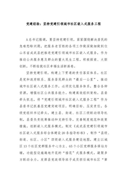 / 【七哥公文】2025年:党建经验:坚持党建引领城市社区嵌入式服务工程+更多免费公文+VX:QiGeGongWen2024