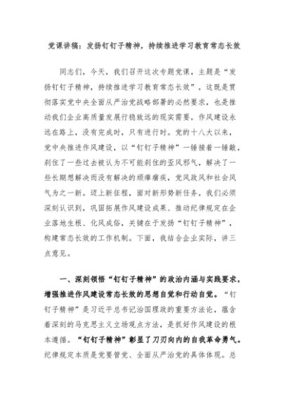 【七哥公文】2025年:党课讲稿:发扬钉钉子精神,持续推进学习教育常态长效+更多免费公文+VX:QiGeGongWen2024