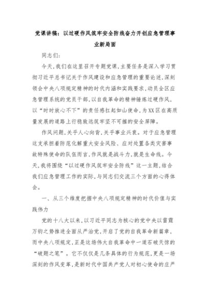 【七哥公文】2025年:党课讲稿:以过硬作风筑牢安全防线奋力开创应急管理事业新局面+更多免费公文+VX:QiGeGongWen2024