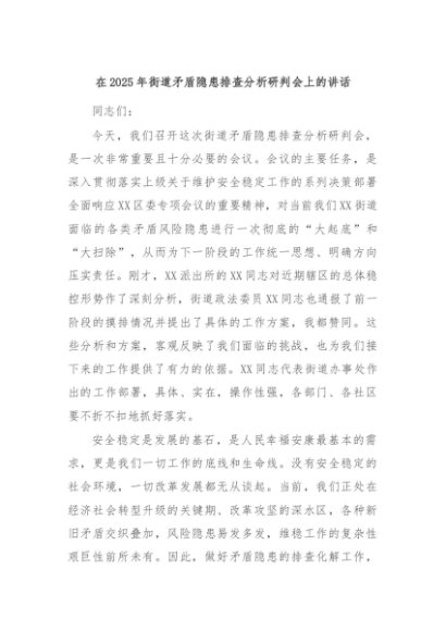 / 【七哥公文】2025年:在2025年街道矛盾隐患排查分析研判会上的讲话+更多免费公文+VX:QiGeGongWen2024