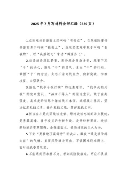 / 【七哥公文】2025年:2025年7月写材料金句汇编(539页)+更多免费公文+VX:QiGeGongWen2024
