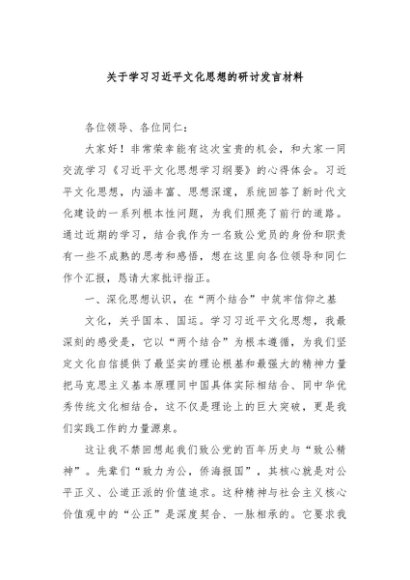 【七哥公文】2025年:关于学习总书记文化思想的研讨发言材料+更多免费公文+VX:QiGeGongWen2024