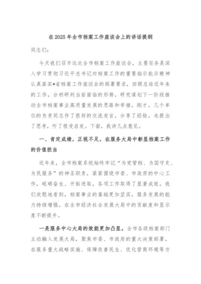 / 【七哥公文】2025年:在2025年全市档案工作座谈会上的讲话提纲+更多免费公文+VX:QiGeGongWen2024