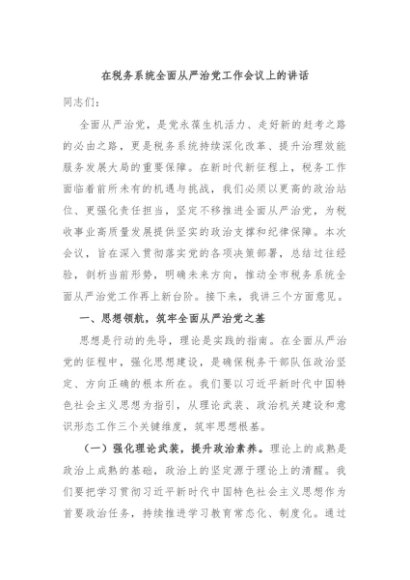 / 【七哥公文】2025年:在税务系统全面从严治党工作会议上的讲话+更多免费公文+VX:QiGeGongWen2024