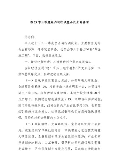 / 【七哥公文】2025年:在XX市三季度经济运行调度会议上的讲话+更多免费公文+VX:QiGeGongWen2024