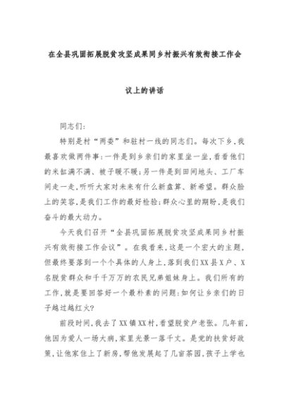 【七哥公文】2025年:在全县巩固拓展脱贫攻坚成果同乡村振兴有效衔接工作会议上的讲话+更多免费公文+VX:QiGeGongWen2024