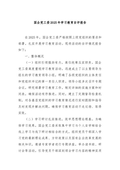 / 【七哥公文】2025年:国企党工委2025年学习教育自评报告+更多免费公文+VX:QiGeGongWen2024