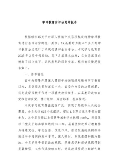 / 【七哥公文】2025年:学习教育自评估总结报告+更多免费公文+VX:QiGeGongWen2024