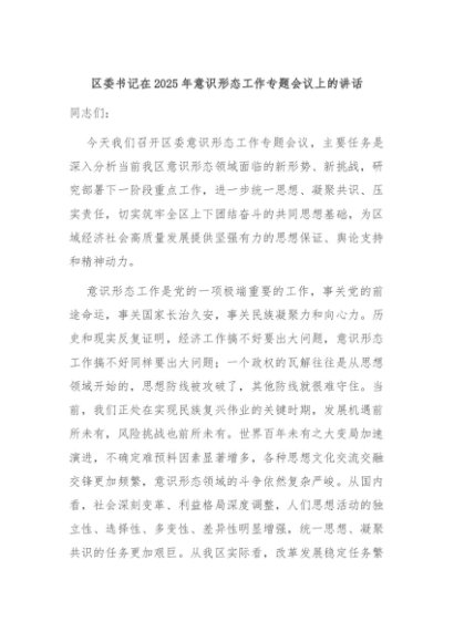 / 【七哥公文】2025年:区委书记在2025年意识形态工作专题会议上的讲话+更多免费公文+VX:QiGeGongWen2024